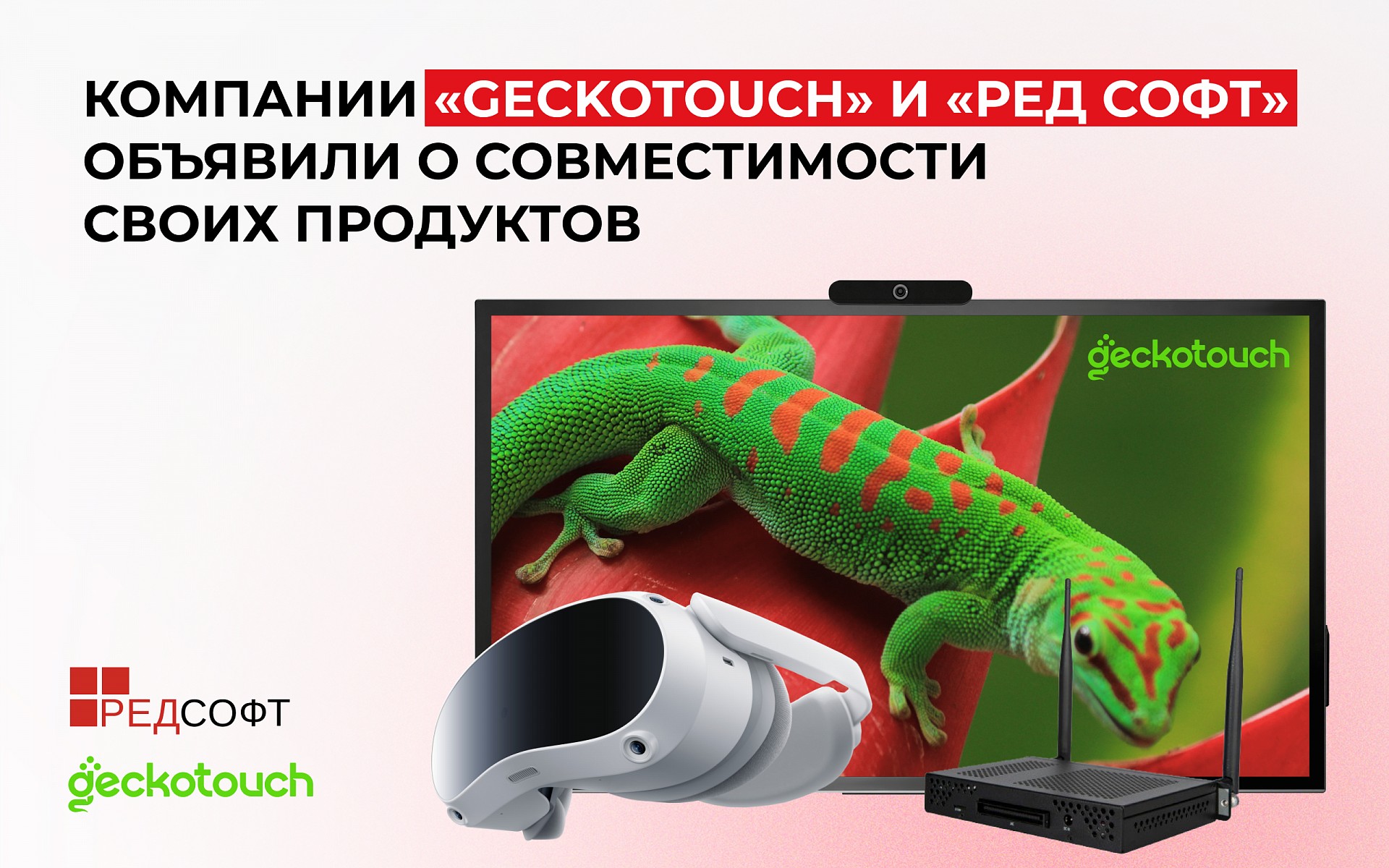 Российский производитель интерактивного и мультимедийного оборудования Geckotouch и отечественный разработчик решений и услуг в области информационных технологий РЕД СОФТ подтвердили совместимость интерактивных программно-аппаратных комплексов и операционной системы РЕД ОС.