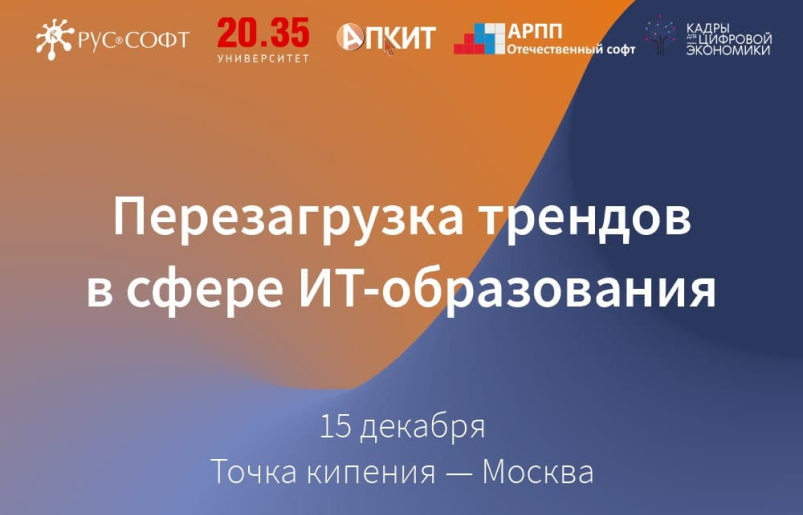 15 декабря в Москве объединение РУССОФТ совместно с «Университетом 2035» проведут конференцию «Перезагрузка трендов в сфере IT-образования». Лейтмотивом мероприятия станет вопрос «Как в стенах учебных заведений готовить высококвалифицированные кадры для IT-индустрии?».