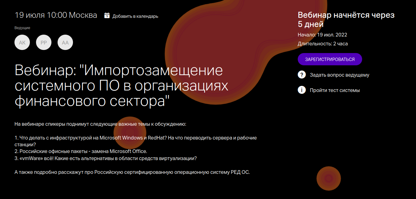 19 июля в 10:00 (по мск) компании SDK Systems и РЕД СОФТ проведут совместный вебинар, посвященный актуальной на сегодняшний день теме импортозамещения.